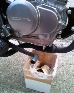 今回私は車体を垂直にするのを忘れていたため、オイルを規定よりもかなり多く入れ過ぎてしまいました。